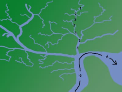 - But when the 4th order stream enters a largish river (6th order) ... nothing happens. Not to stream order, anyway. The river is still 6th order, because the stream has only added a little water proportionally. The river would have to meet up with another 6th order before it would be promoted to 7th order. In other words, 6+1=6 and 6+2=6 and so on, all the way until 6+6=7.