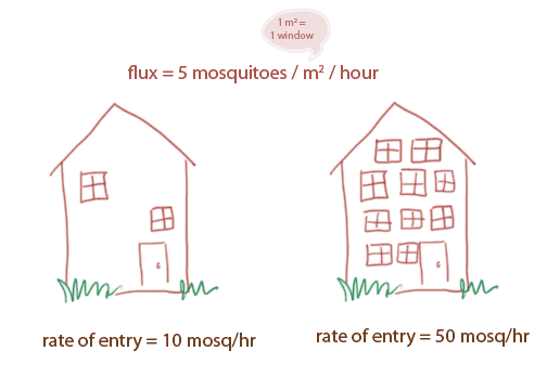 If I want to know how many total mosquitoes enter my house per hour, I need to know one more thing: how many windows my house has!! A house with 2 windows will have far fewer mosquitoes entering than a house with 10 windows!
