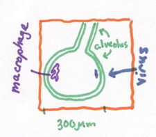The macrophage is a specialized cell that defends that body against foreign materials. Within the lungs, macrophages engulf inhaled viruses and digest them. Macrophages move in a way that is very similar to diffusion – they ooze along at a stately 3 micrometers per minute, but change directions more or less randomly about every 5 minutes.