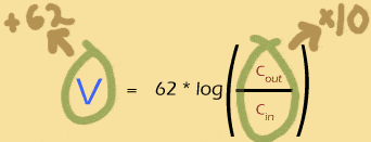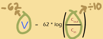 I just can't leave this topic without talking at least a little about logs. Sure, when you're just plugging numbers into an equation, you can (should) ask your calculator to do the logs for you. But if you want to understand how the Nernst potential and the concentration gradients are actually related, you really should understand how that log works.