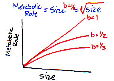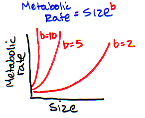 rate. When b is less than 1, it means that as size increases, metabolic rate also